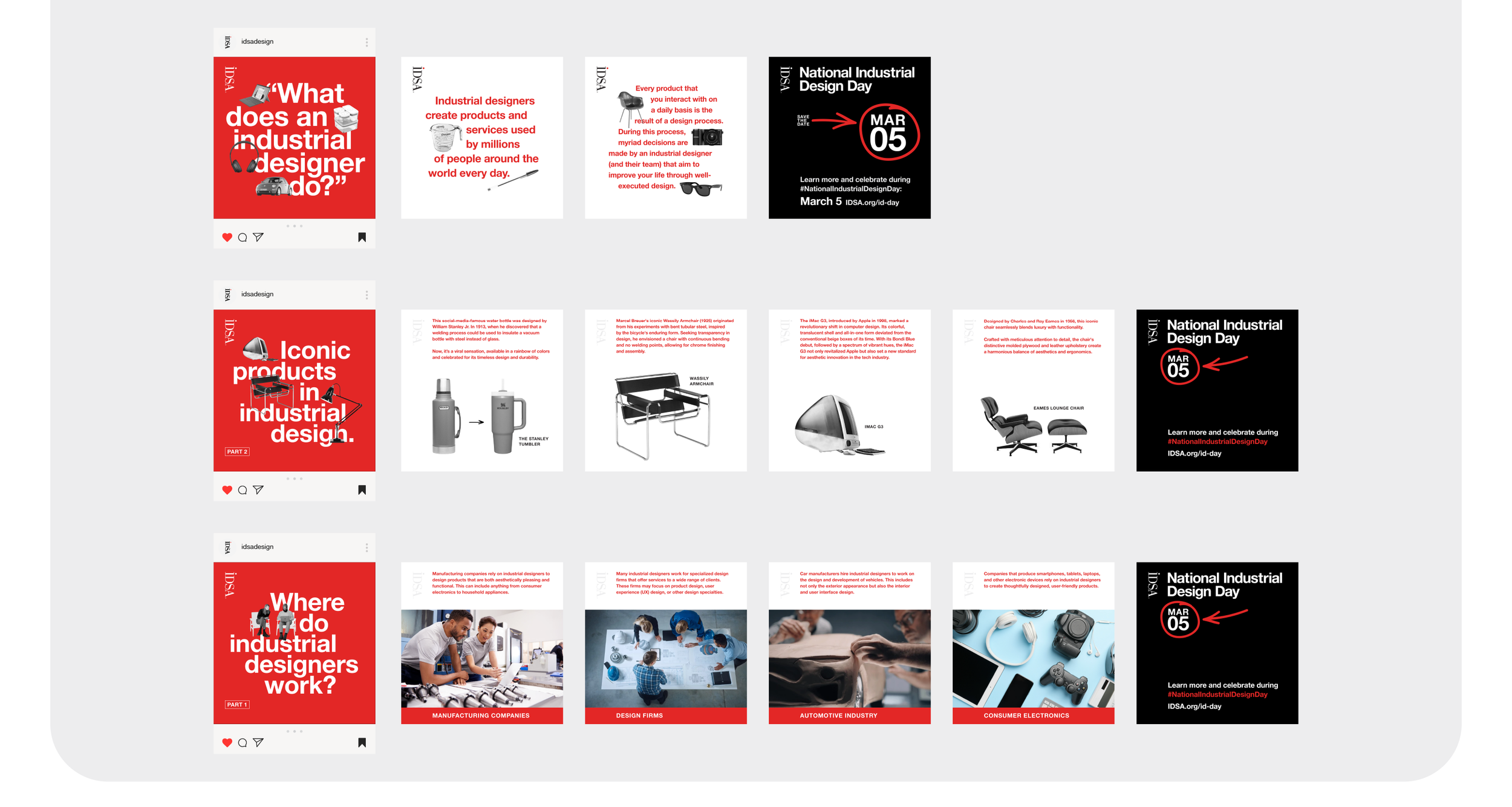 As the guardian for the IDSA visual brand and sub-brands, I delivered a brand audit and strategy that guided the update of the IDSA parent brand and visual identity system. I partnered with the IDSA Marketing Director to create marketing deliverables plus social media assets and campaigns. The essential elements of the brand (the IDSA logo, the red and black color palette and Helvetica Neue) were retained for their classic design and updated with layout and additional brand elements.